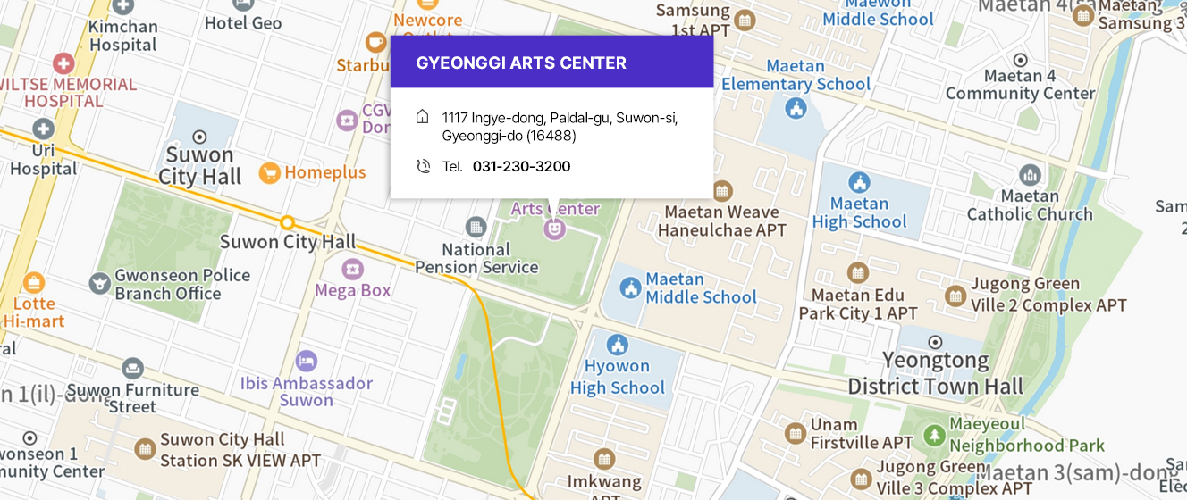 - Enter your Destination. Suwon, Gyeonggi Arts Center (GGAC)