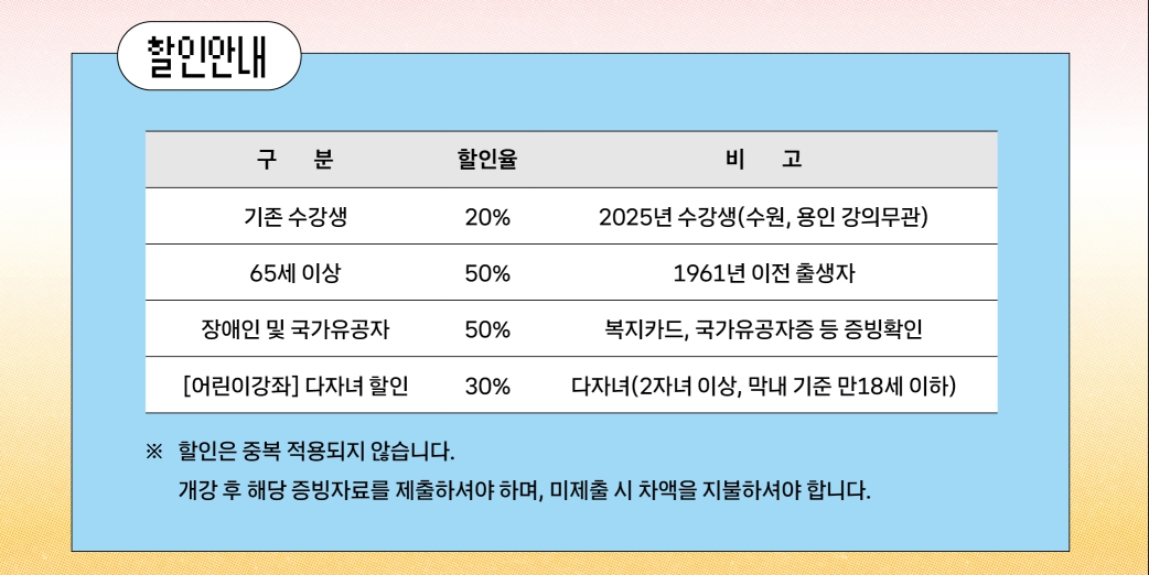 | 대상 | 성인 | 교육요일(횟수) | 금 (20회) |