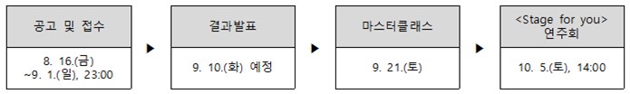 - 연주곡: 오디션(연주 영상)과 동일한 곡으로 연주- 마스터 클래스 기회 제공(1회)