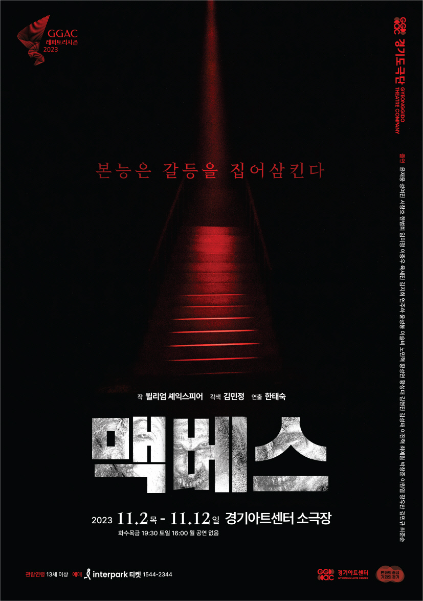 경기도극단이 2023년 레퍼토리 시즌 마지막 작품인 연극 <맥베스>를 오는 11월 2일부터 11월 12일까지 경기아트센터 소극장에서 선보인다.
