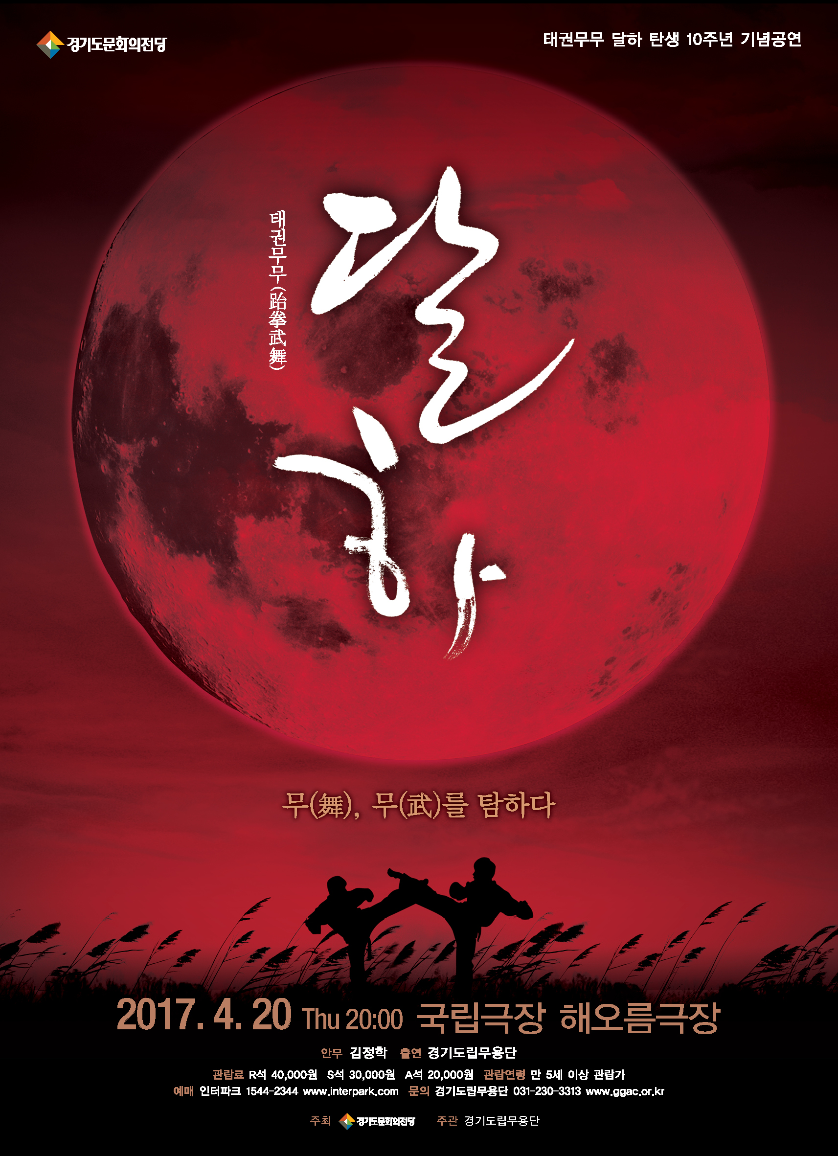 - 한편, 달하 탄생 10주년 <태권무무 달하>는 4월 20일 국립극장 해오름극장을 시작으로 6월 16일, 17일 양일 간 경기도문화의극장 대극장에서 공연된다. 또 현재 경기도립무용단의 페이스북과 인스타그램을 통해 상품이벤트도 진행 중이다. <태권무무 달하> 포스터와 리플릿을 들고 찍은 사진을 올리면 추첨을 통해 경품을 받을 수 있다. 경기도립무용단 장은 “<태권무무 달하>는 태권도를 단순한 무술이나 스포츠가 아닌, 문화의 원형이자 예술로 재조명한 공연이며, 우리 태권도의 우수성을 알리고 그 안에 담긴 우리 민족의 문화와 역사, 삶의 철학을 전세계의 대중들과 함께 공감하고자 만들었다”며 “2017년 더욱 새롭고 풍성해진 달하를 기대해달라”고 당부했다.