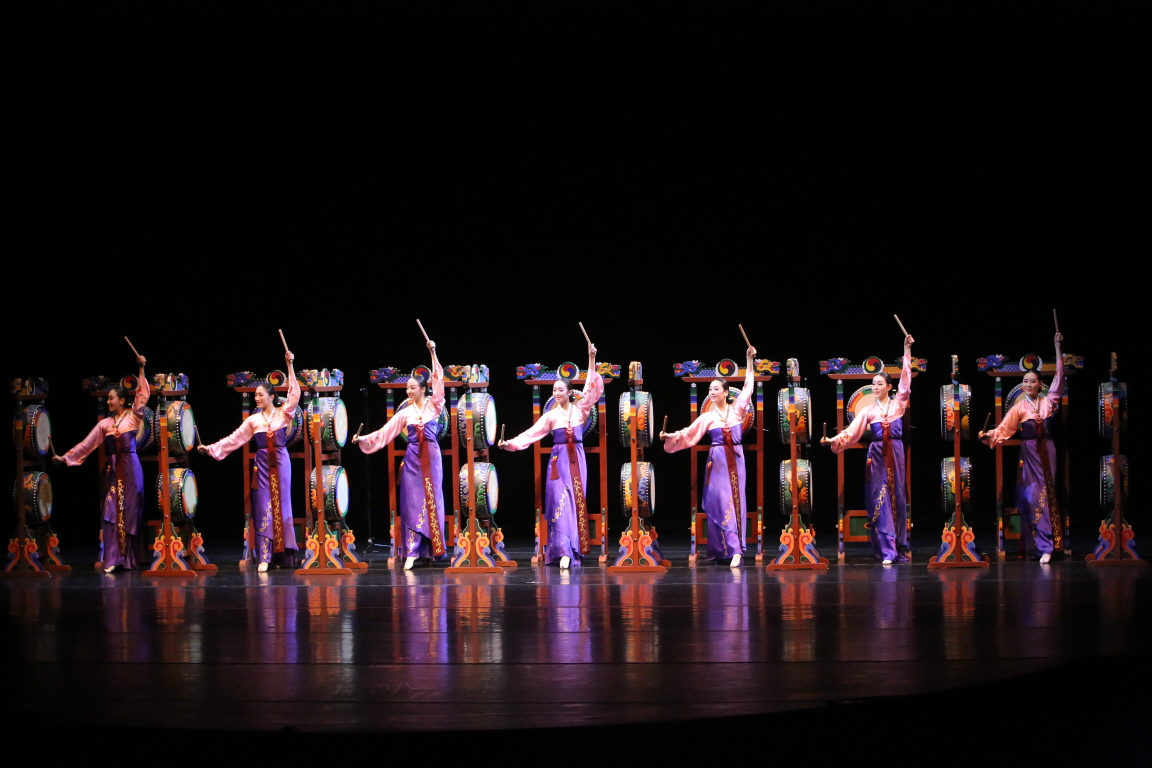 오고무옛 부터 우리나라를 대표하는 북으로 자명고, 신문고, 법고 등이 유래하였으며 모두가 인간사의 마음을 나타내는 울림소리로 북을 두드려 북과 대화형식을 취하였으며 오늘 공연되는 오고무는 삶의 역동을 여인의 마음으로 두드리며 무대화한 북춤이다. 군무(여자) 2부 비, 바람, 구름, 천둥 장구, 징, 북, 꽹과리 4가지의 악기는 서로 다른 소리의 높낮이를 지니고 있어 소리의 음양(陰陽) 조화를 이루고 있다.