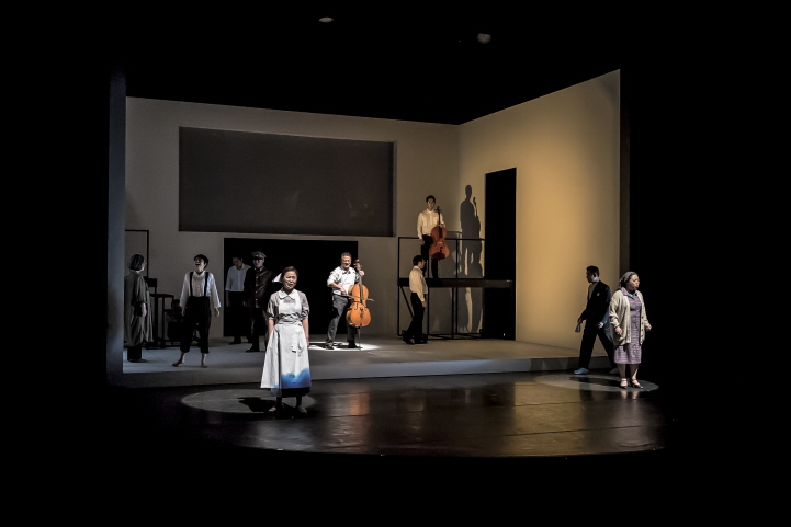 지난 7월 경기도문화의전당에서 초연한 <윤이상;상처입은 용>은 '과감한 시도와 높은 완성도를 갖춘 창작극'이라는 호평을 받으며 수원을 찾은 관객들에게 진한 감동을 남겼다. 음악가 윤이상(1917~1995)의 탄생100주년을 맞아 각계 문화 예술 장르에서 그를 기리고 있는 가운데, 경기도립극단은 결코 정치적 잣대만으로 해석할 수 없는 그의 순수하고도 장엄한 예술 세계를 극으로 풀어내며 일찌감치 선봉에 섰다. 이제 <윤이상;상처입은 용>은 무대를 대학로로 옮겨 좀 더 많은 관객들과 소통을 시도한다.