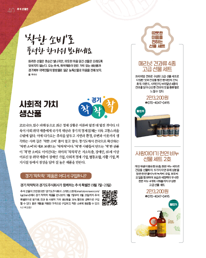 기관소식 사업공고 입찰공고 보도자료 예술과만남 경기소식 사회적가치 생산품 경기 '착착착' 온라인 기획전(추석특별전) 관리자 2020-09-09 15:00 (수정일: 2021-03-16 15:48) 조회수 1,163 2021년 사회적경제조직 공공수탁․이용지원 사업 수탁기관 모집 2차 공고 목록 경기도 사회적가치 생산품 ' 착착착' 특별전