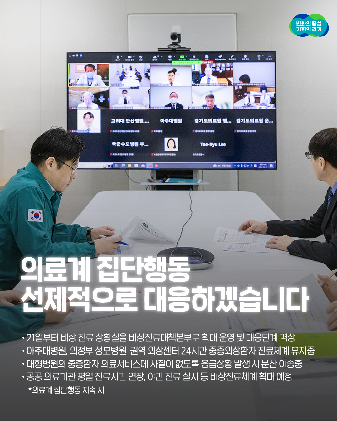 기관소식 사업공고 입찰공고 보도자료 예술과만남 경기소식 [경기소식]의료계 집단행동에 따른 비상진료체계 가동 관리자 2024-02-26 13:00 (수정일: 2024-02-27 14:56) 조회수 380 경기콘텐츠진흥원 2024년 온라인 사업설명회 목록 [경기소식] 경기북부특별자치도 새이름 공모전