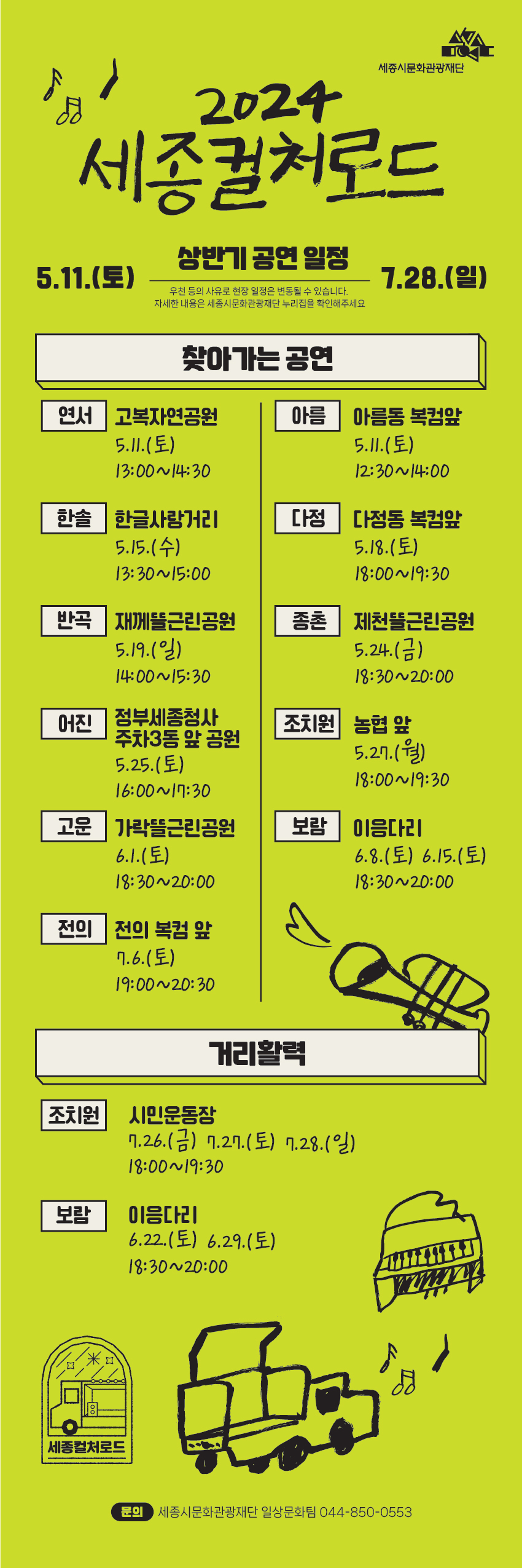 기관소식 사업공고 입찰공고 보도자료 예술과만남 경기소식 2024 세종컬쳐로드 상반기 공연일정 관리자 2024-04-24 13:00 조회수 369 첨부파일 붙임 2. 세종거리예술가 프로필 소개자료(압축).pdf 미리보기 다운로드 [경기소식]The 경기패스 목록 경기도 노동자 휴가비 지원사업