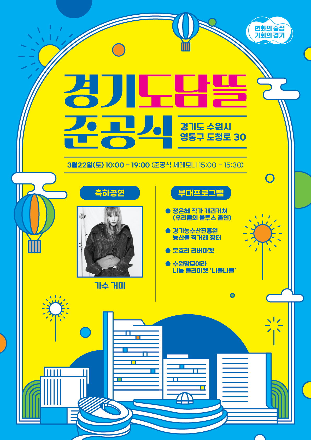 ○ 일자 : 3월22일(토) 10:00 ~ 19:00 (준공식 세리모니(15:00 ~ 15:30)