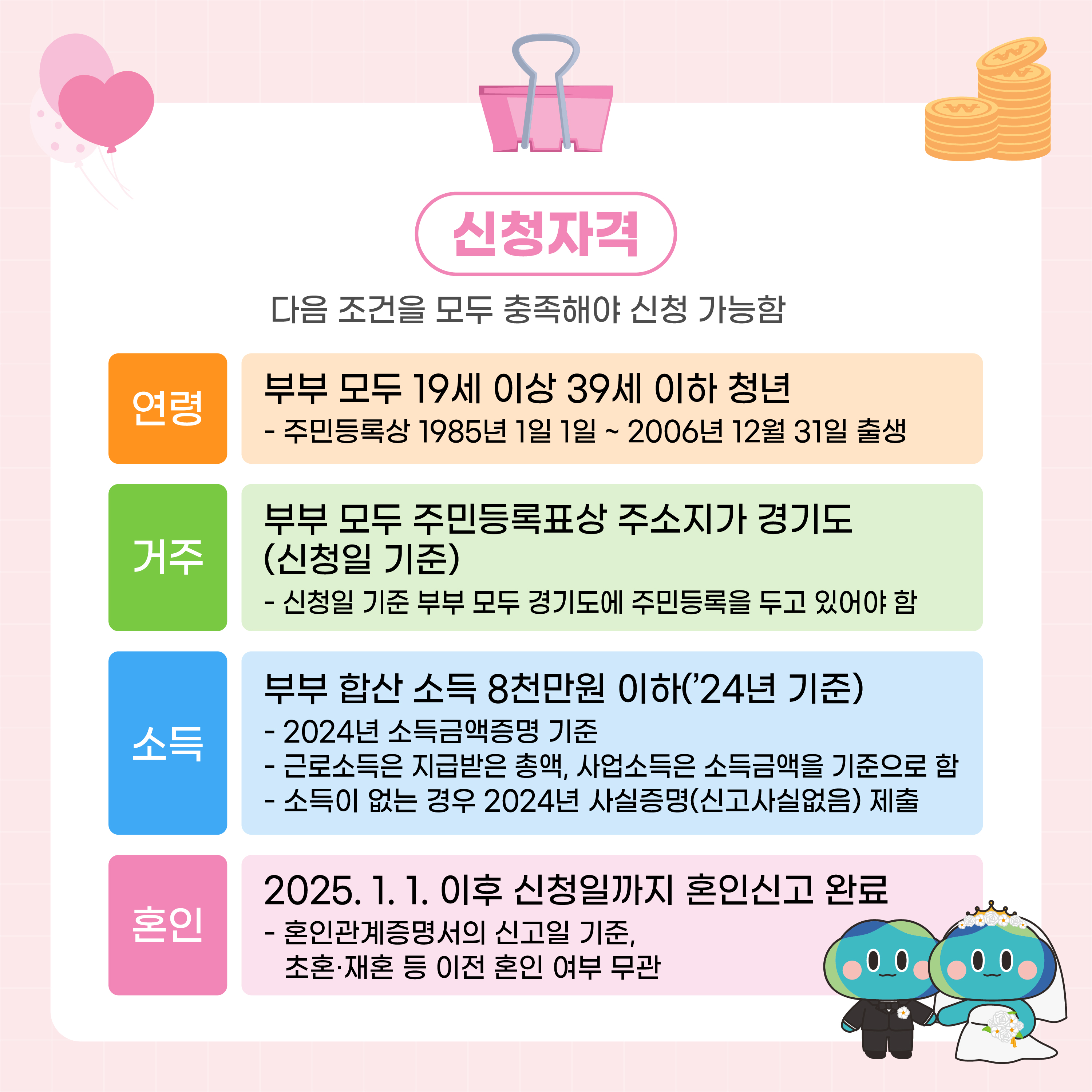 나. 신청대상 : 경기도 청년 신혼부부 중 아래 조건을 모두 충족하는 자