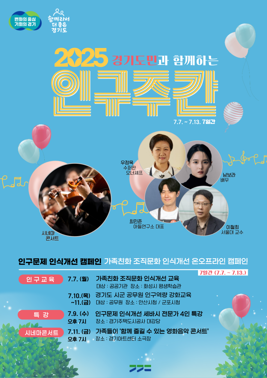 ① 경기도 인구주간 특집 세바시 강연회o 일 시 : '25. 7. 9.(수) 19:00 ~ 21:00