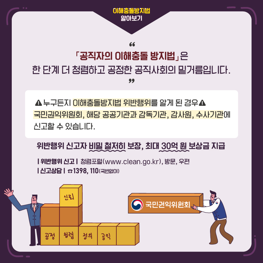 윤리경영 인권경영 ESG경영 공정거래 윤리경영 선언문 윤리경영 게시판 헬프라인 국민권익위원회 카드뉴스 - 공직자의 이해충돌 방지법 어떤 법인가요? 감사팀 2022-05-19 11:00 (수정일: 2022-10-10 23:43) 조회수 233 국민권익위원회 카드뉴스 - 공직자의 이해충돌 방지법 어떤 법인가요? 첨부파일 1.jpg 미리보기 다운로드 2.jpg 미리보기 다운로드 3.jpg 미리보기 다운로드 4.jpg 미리보기 다운로드 5.jpg 미리보기 다운로드 6.jpg 미리보기 다운로드 7.jpg 미리보기 다운로드 국민권익위원회 카드뉴스 - 사례로 알아보는 공공재정환수법 부정청구 목록 (국민권익위원회) 2022년 공익침해 자율예방을 위한 기업 가이드 배포