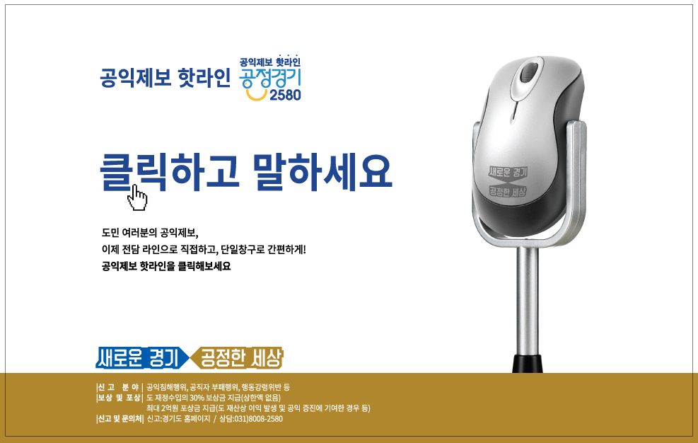 윤리경영 인권경영 ESG경영 공정거래 윤리경영 선언문 윤리경영 게시판 헬프라인 [공지] 경기도 공익제보 핫라인 - 공정경기 2580」 제도 시행 관리자 2019-01-04 00:00 (수정일: 2019-07-19 11:22) 조회수 1,177 공익신고_경기도 청렴사회 민관 협의회와 함께합니다. 목록 부패공익신고란?