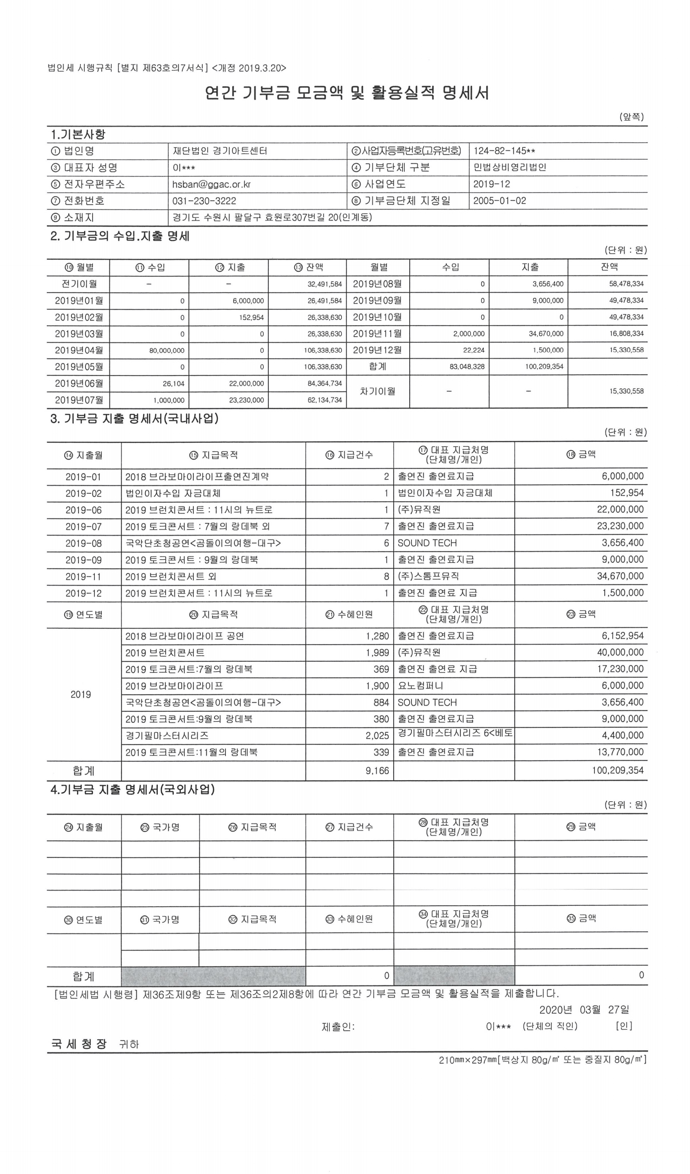 사전정보공표 경영공시 공공데이터 행정정보공개 경영공시 일반현황 재산현황 예산현황 감사현황 경영성과 계약현황 2019 연간기부금모금액 및 활용실적 명세서 관리자 2020-03-31 00:00 (수정일: 2020-03-31 17:37) 조회수 855 첨부파일 2019 연간기부금모금액 및 활용실적 명세서.pdf 미리보기 다운로드 2020 연간기부금모금액 및 활용실적 명세서 목록 다음 게시글이 없습니다.
