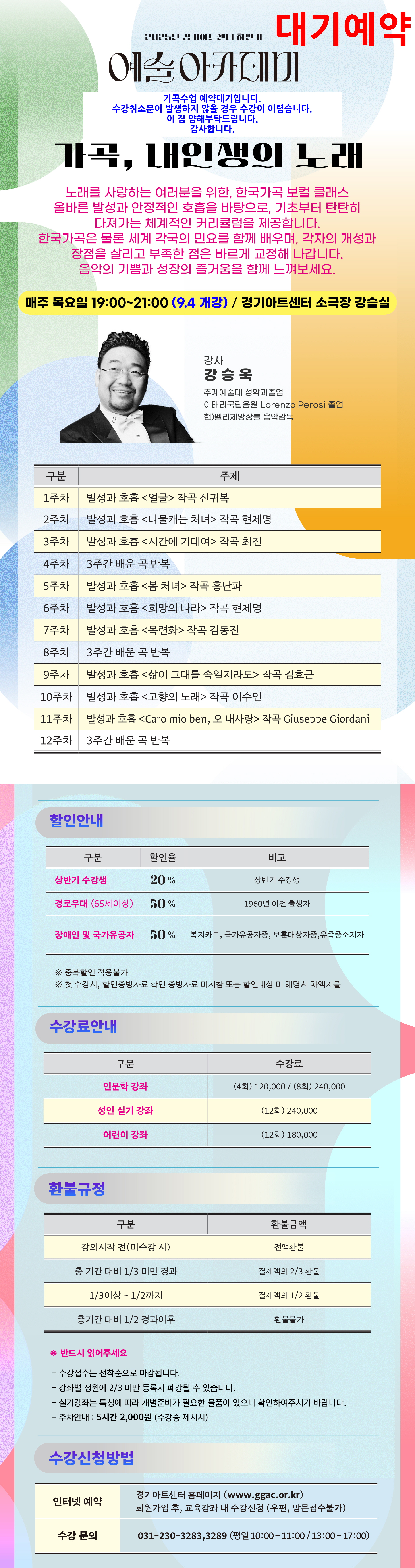 [대기예약] 예술실기아카데미 <가곡, 내 인생의 노래)>