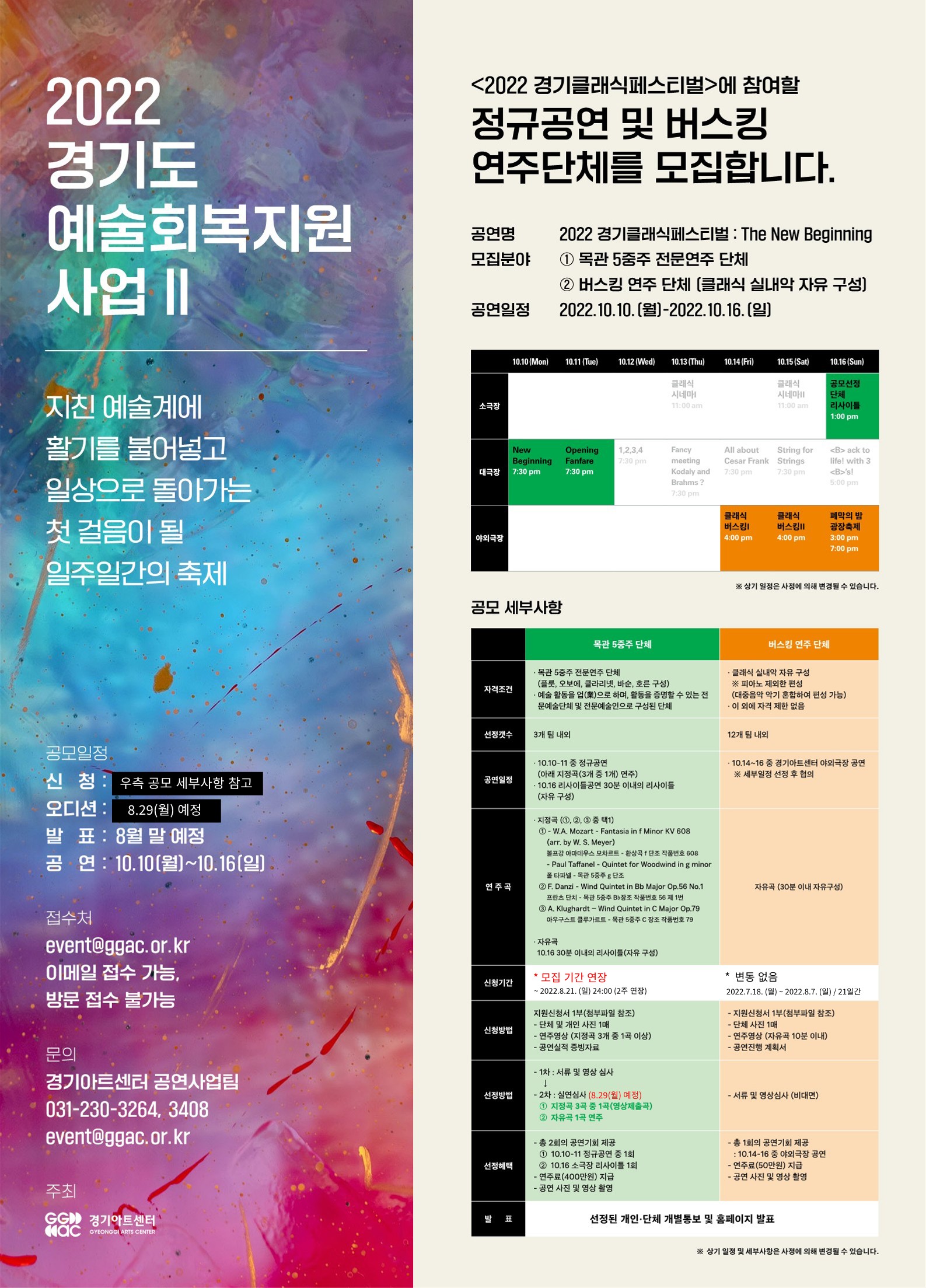 - 문의 : 경기아트센터 공연사업팀 (031-230-3264, 3408 / event@ggac.or.kr)