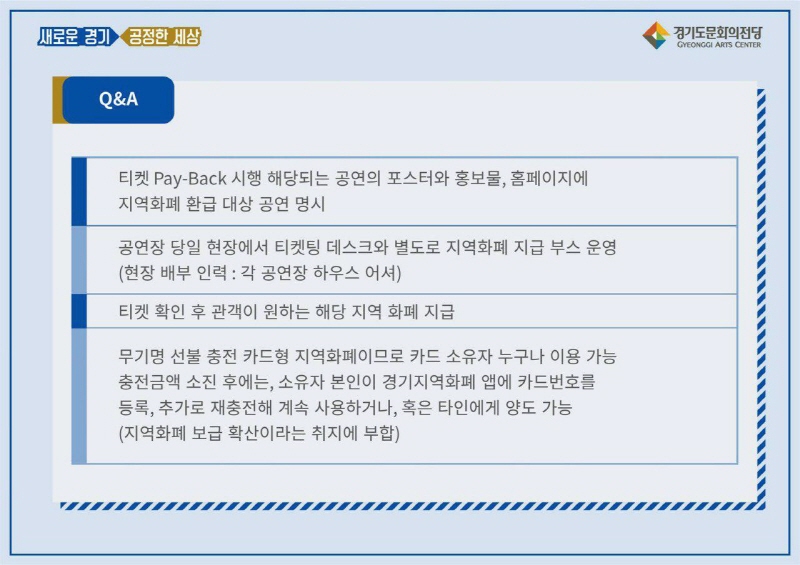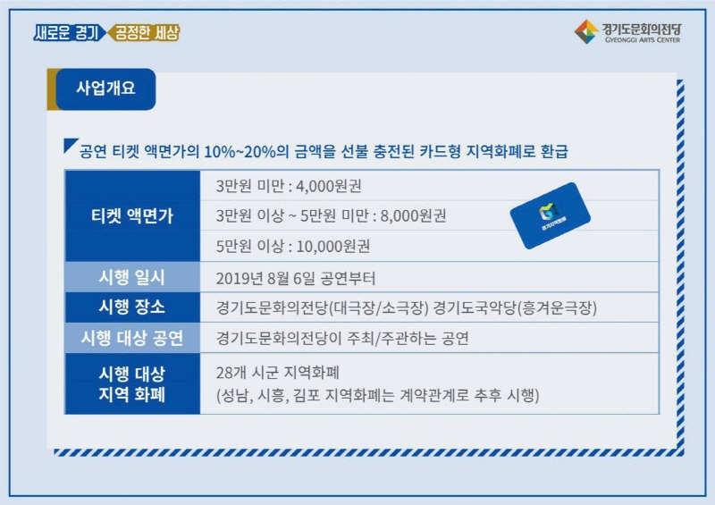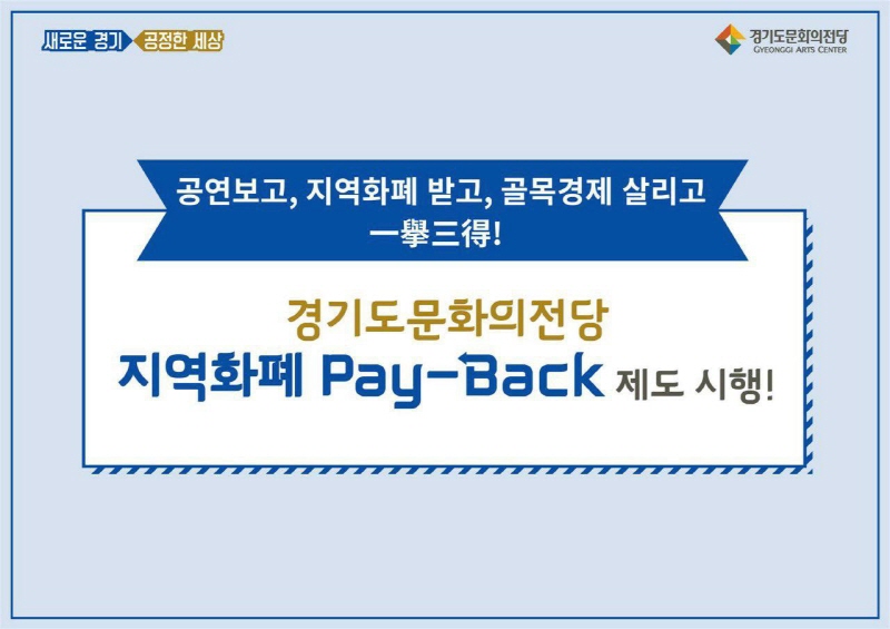 경기지역화폐 PAY-BACK 제도 시행 관리자 2019-07-31 00:00 (수정일: 2020-02-03 11:02) 조회수 22,249 경기도립극단 예술감독 공개채용 서류전형 결과 공고 목록 2019 경기도문화의전당 제2차 하우스어셔 채용 연장 공고